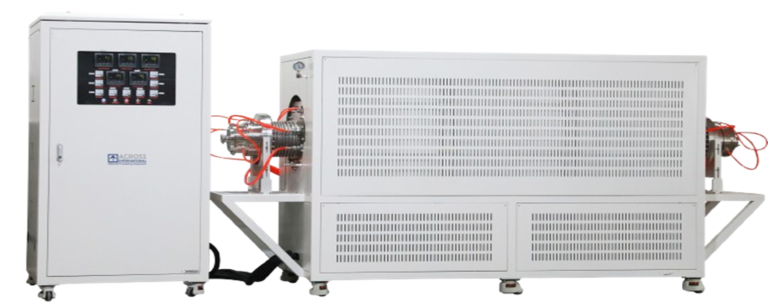 This is a large-diameter multi-zone tube furnace featuring a double-shell structure, with an inner silicon carbide (SiC) tube and an outer stainless steel tube. Inert gas is filled between the two layers, effectively preventing the gas from the inner tube from diffusing into the air.