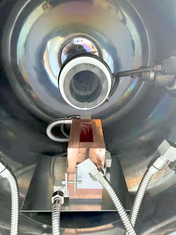 - Jacketed water-cooled chamber keeps surface temperature down