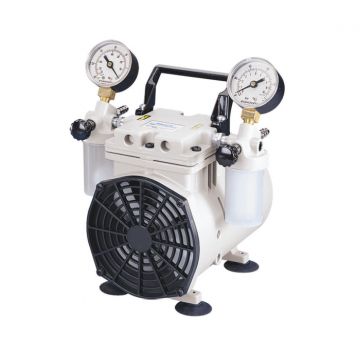 *Note: Standard-duty dry pumps are not recommended for pumping organic, acidic, or basic vapors. WOB-L 2522 dry piston pumps are a reliable partners for physical applications, notably with aqueous solutions. Being a vacuum pump and compressor, they can be used for a wide variety of applications such as filtration, gas sampling, vacuum drying, desiccation and automation technology. The integrated vacuum and pressure gauges and regulators allow the pressure to be continuously monitored and adjusted.