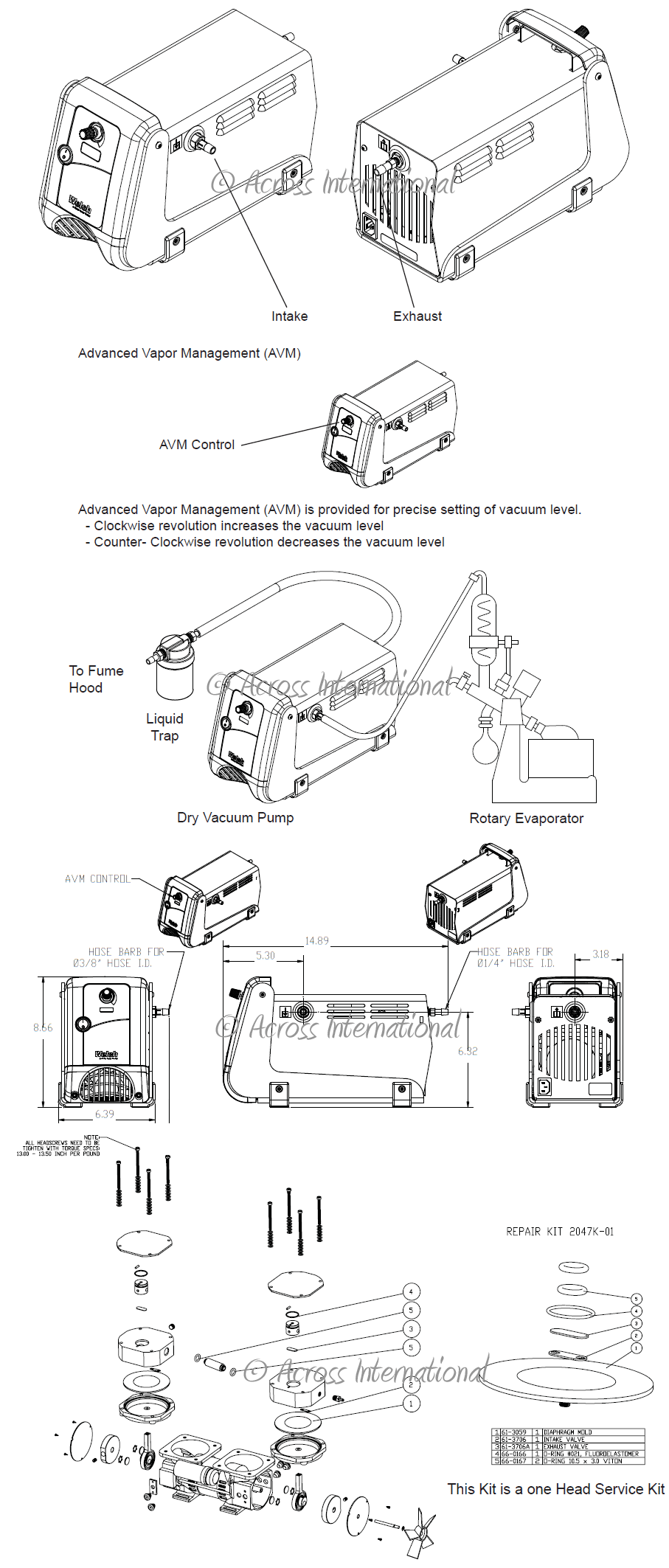Welch 2042 chemical-resistant oil-free diaphragm pump
