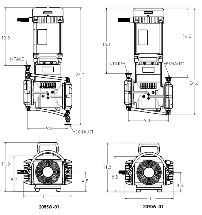 • Ultimate Vacuum Pressure 29″ Hg (25 torr)