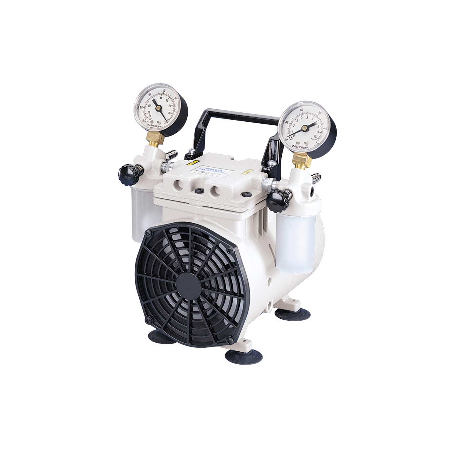 The WOB-L dry vacuum pump from Welch uses piston pumps, which work extremely well down to 100 Torr. This pump was designed for filtering up to two funnels at a time, vacuum drying, desiccation and more.