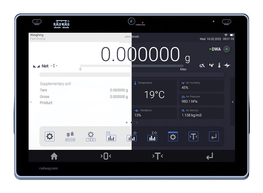 Digital Weighing Auditor 10-Inch Display . Uncompromising User Verification Ambient Light – An Innovative Way for the Balance to Communicate With the User Hotspot RFID Live Note – Note Down Your Conclusions Handy Library Widgets Automatic Leveling of the Balance ReflexLEVEL System Smart Min Weight Fully Antistatic Weighing Chamber 21 CFR Part 11 Modbus TCP/IP